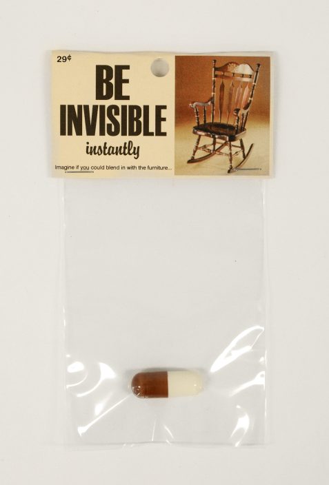 Be Invisible Instantly (Soyez invisible instantanément) a été acquis dans le cadre d’une exposition de l’artiste présentée à La Centrale Galerie Powerhouse en 2015.
